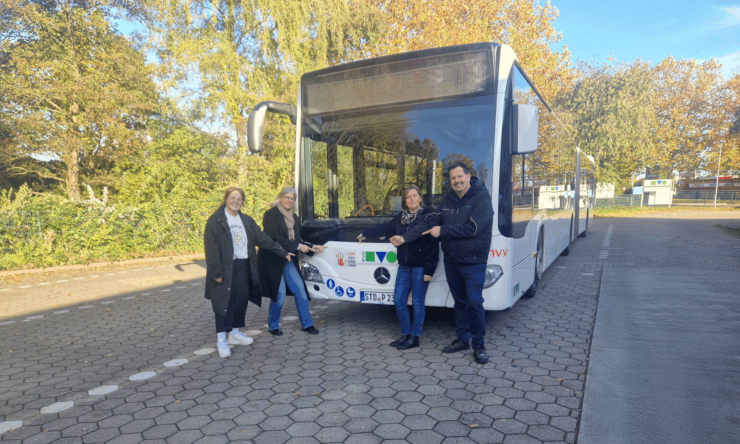 In diesem Zeitraum fahren in unserem Liniennetz rund 30 Busse mit dem Hinweis „Stopp Gewalt an Frauen“. Zusätzlich informieren wir über das Fahrgastfernsehen über die Kampagne. Auf diese Weise erreichen wir täglich viele Menschen auf ihrem Weg zur Arbeit, zur Schule oder in der Freizeit – und erinnern daran, dass Gewalt niemals akzeptabel ist.